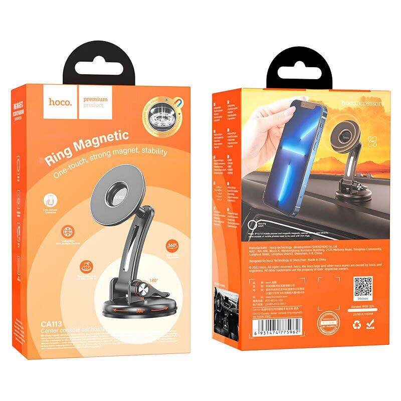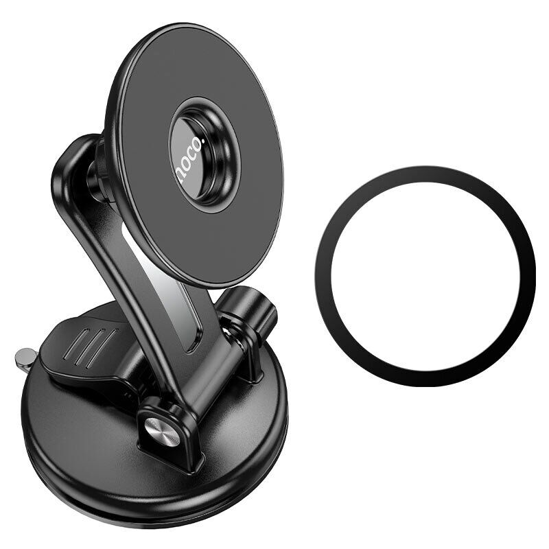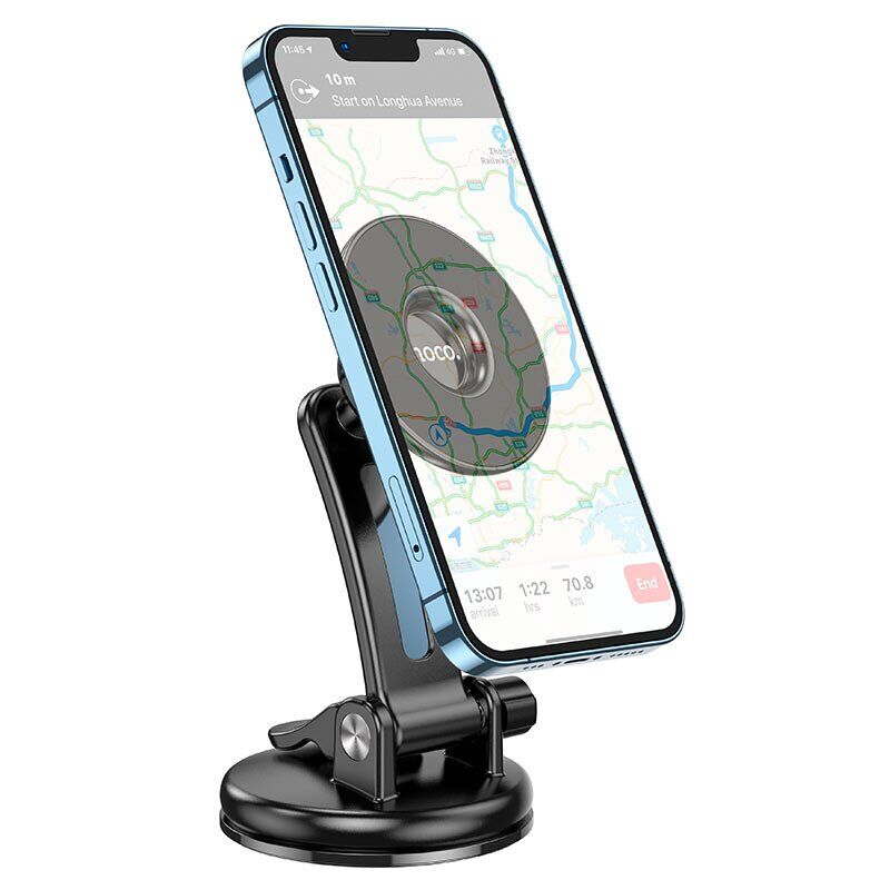 Автомобільний тримач Hoco CA113 оснащений магнітом та здатний утримувати смартфон діагоналлю до 7 дюймів. Призначений для кріплення на приладову дошку або лобове скло автомобіля. Фіксація відбувається за рахунок вакуумної присоски. Поворотний шарнір дозволяє задавати зручне положення смартфона.