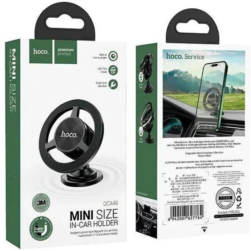 Автомобільний тримач Hoco DCA46 - це відмінне рішення для тих, хто хоче зафіксувати смартфон в машині без зайвих маніпуляцій: компактна конструкція не перевантажує панель, магнітна фіксація з шістьма неодимовими елементами тримає пристрій стабільно навіть при динамічній їзді, а шарнірна головка допомагає оперативно підстроюватися. Модель легко монтується на клейову основу 3M, не вимагає інструментів та забезпечує рівну посадку завдяки збалансованій геометрії та матеріалам корпусу, де поєднуються алюмінієвий сплав, ABS та силікон для захисту смартфона від подряпин та вібрацій.