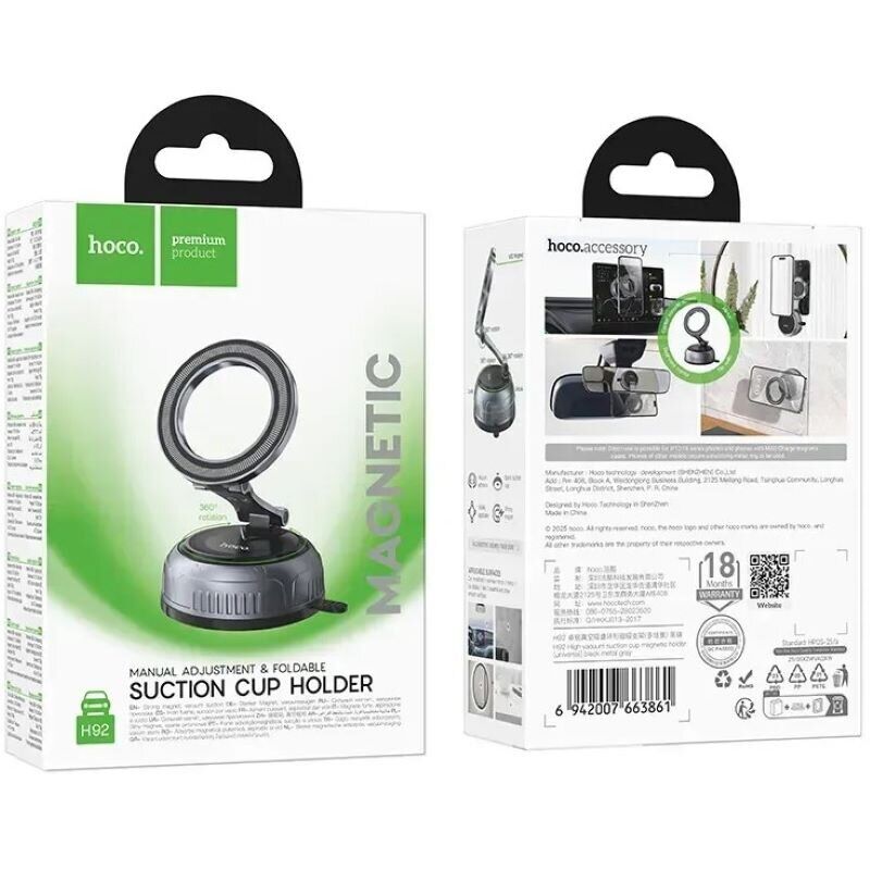 Автомобільний тримач Hoco H92 – універсальне та практичне рішення для комфортного використання смартфона в дорозі. Модель відрізняється продуманою конструкцією, яка дозволяє надійно фіксувати пристрій і при цьому не відволікатися від керування автомобілем. Завдяки вакуумному присосанню тримач легко встановлюється на різні поверхні, включаючи лобове скло, дзеркало заднього виду або панель дисплея. Магнітна система кріплення забезпечує швидке встановлення телефону однією рукою та його надійну фіксацію навіть під час руху нерівною дорогою. Компактний складний механізм дозволяє економити простір у салоні, а якісні матеріали гарантують довговічність та стійкість до зносу. Hoco H92 стане зручним аксесуаром для щоденних поїздок та далеких подорожей, забезпечуючи комфорт та безпеку використання смартфона.