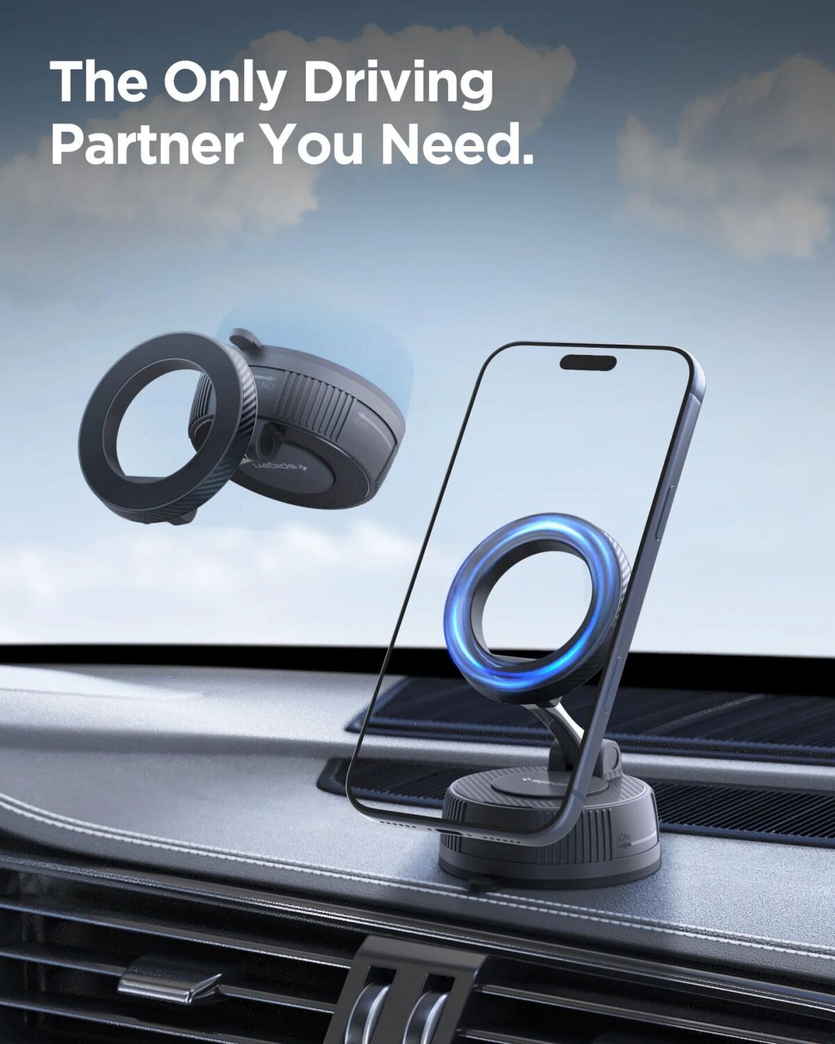 Автомобільний тримач Spigen Magnetic Car Mount MFT36 (ACP11172) — це надійне рішення для зручного та безпечного кріплення смартфона під час поїздок. Потужна магнітна система забезпечує швидке та точне кріплення пристрою, дозволяючи зафіксувати його однією рукою без зайвих зусиль. Конструкція з подвійним шарніром дозволяє легко регулювати положення смартфона: поворот на 360° і нахил до 180° дають можливість налаштувати ідеальний кут огляду під будь-які умови. Це зручно як для навігації, так і для використання додатків у дорозі. Основа тримача оснащена вакуумною системою фіксації з гелевою подушкою, яка надійно утримує пристрій навіть на нерівній дорозі, при різких поворотах або гальмуванні. При цьому кріплення не залишає слідів після зняття. Тримач повністю сумісний з пристроями Apple iPhone 12 і новішими, а також з магнітними чохлами (MagFit) для смартфонів Google Pixel і Samsung Galaxy, забезпечуючи стабільне магнітне з'єднання без зміщень.