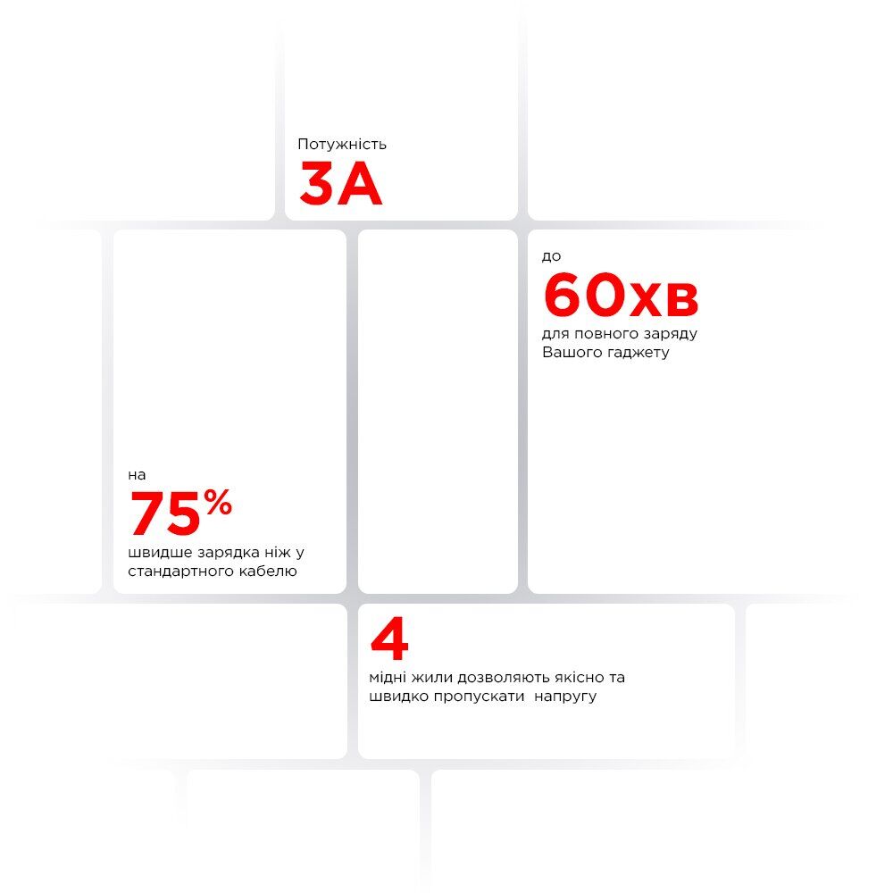 • Оптимальна довжина кабелю для зручної та водночас ефективної зарядки – 1 метр;