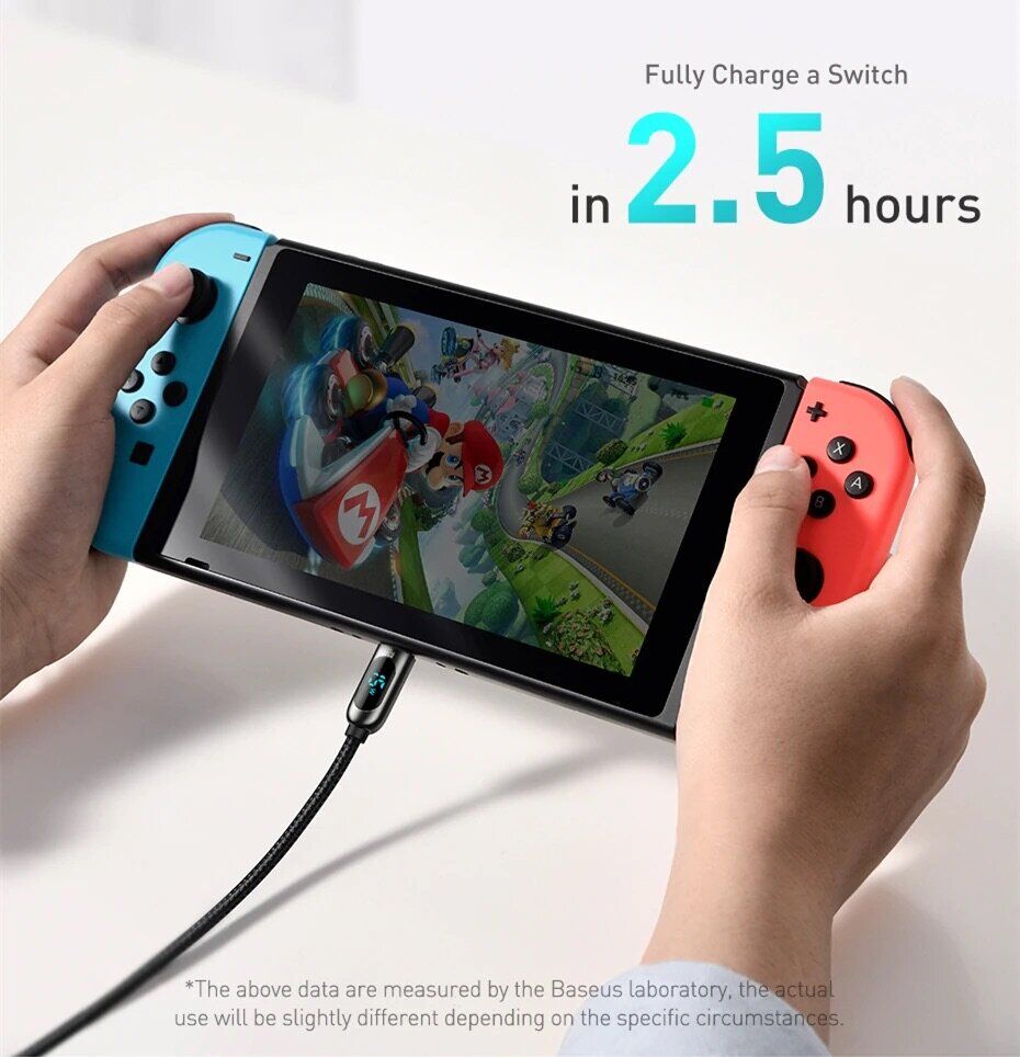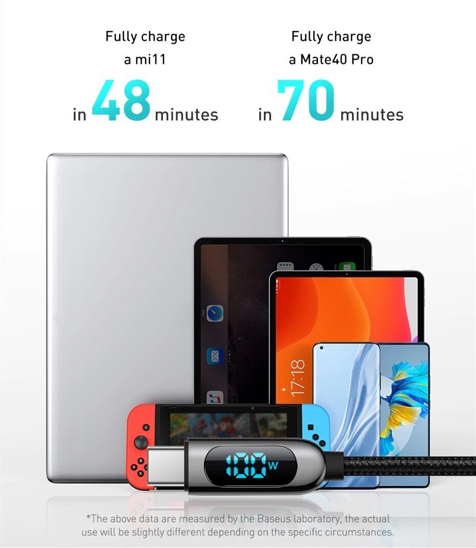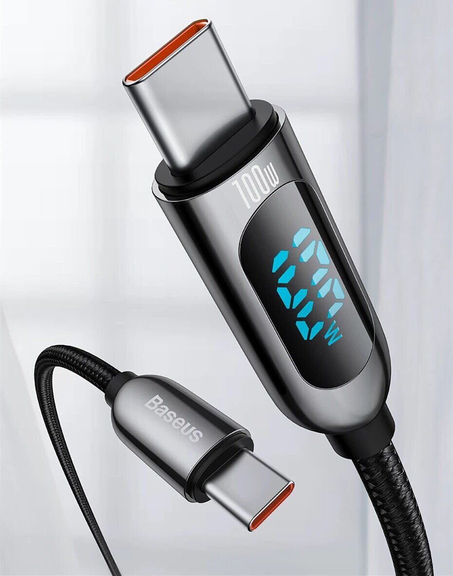 Кабель Baseus Display Fast Charging Data Type-C до Type-C (100W, 1m) CATSK-B01 – потужний зарядний аксесуар, що забезпечує високу швидкість заряджання. Сумісний з широким спектром смартфонів і планшетів, його можна підключити до ПК або лептопу. Головним плюсом такого аксесуару є наявність невеликого дисплея, який відображає поточну потужність зарядки.