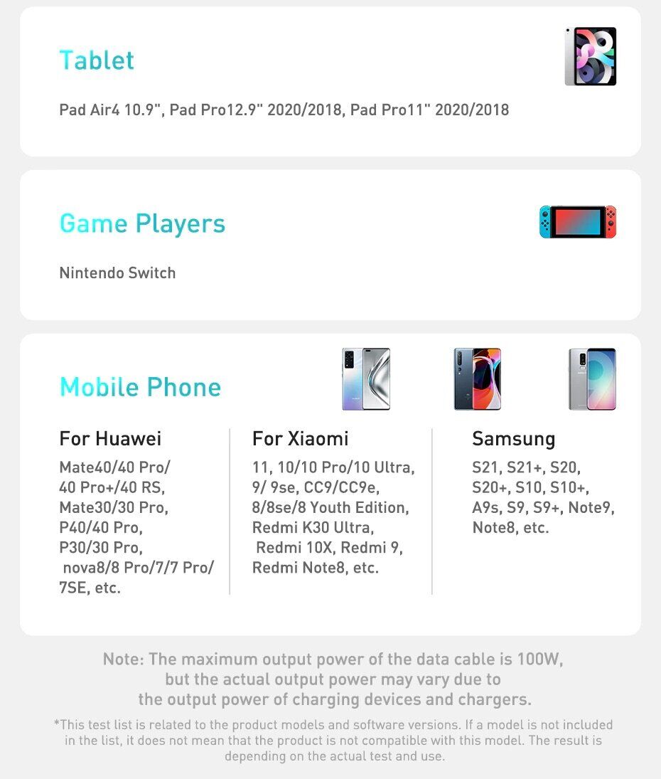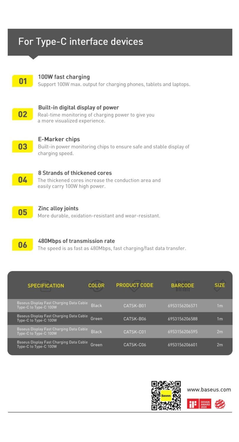 Особливості кабелю Baseus Display Fast Charging Data Type-C to Type-C (100W, 1m) CATSK-B01: