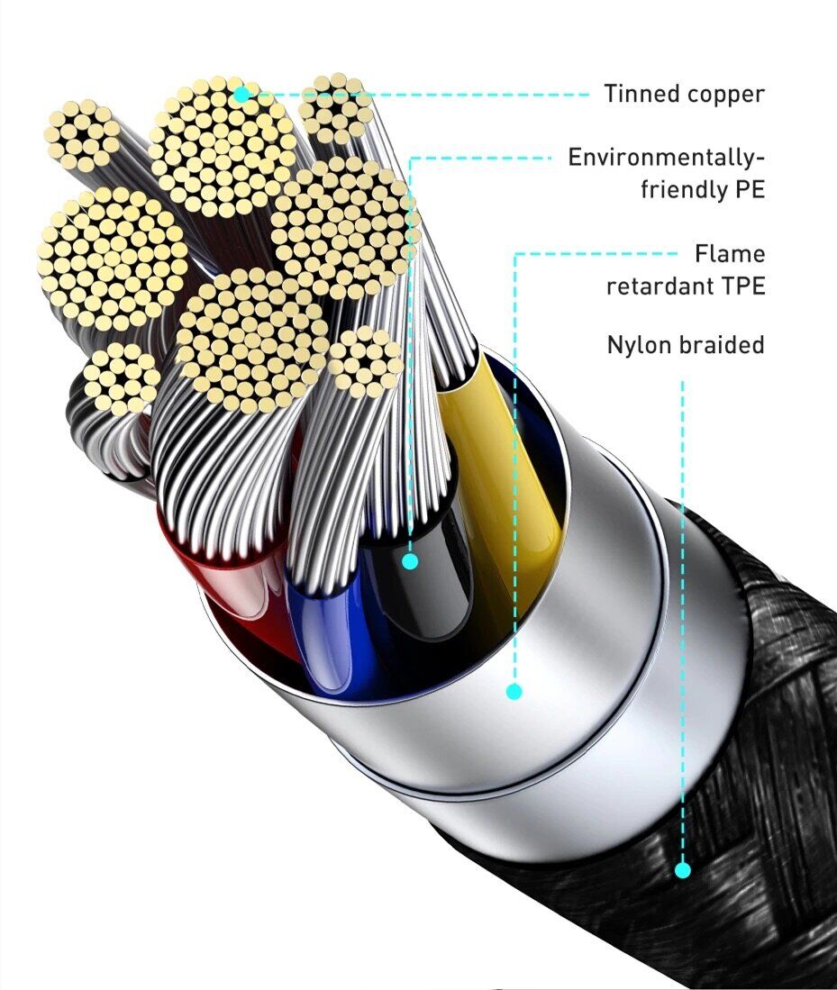 • М'яке нейлонове обплетення робить провід досить міцним і гнучким, щоб витримувати велике зношування;