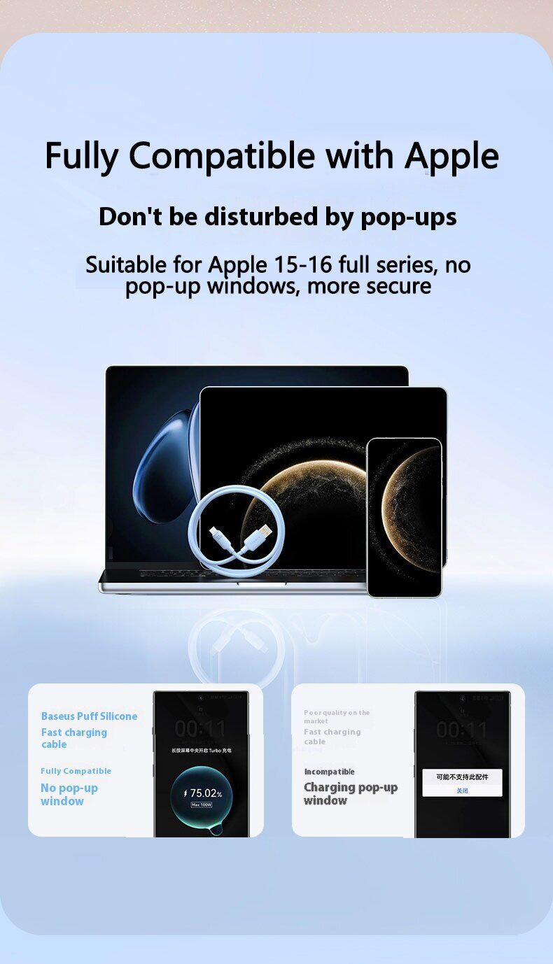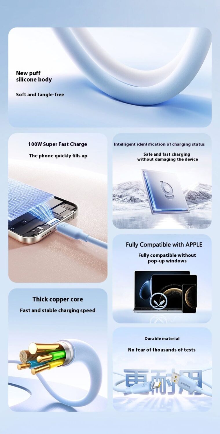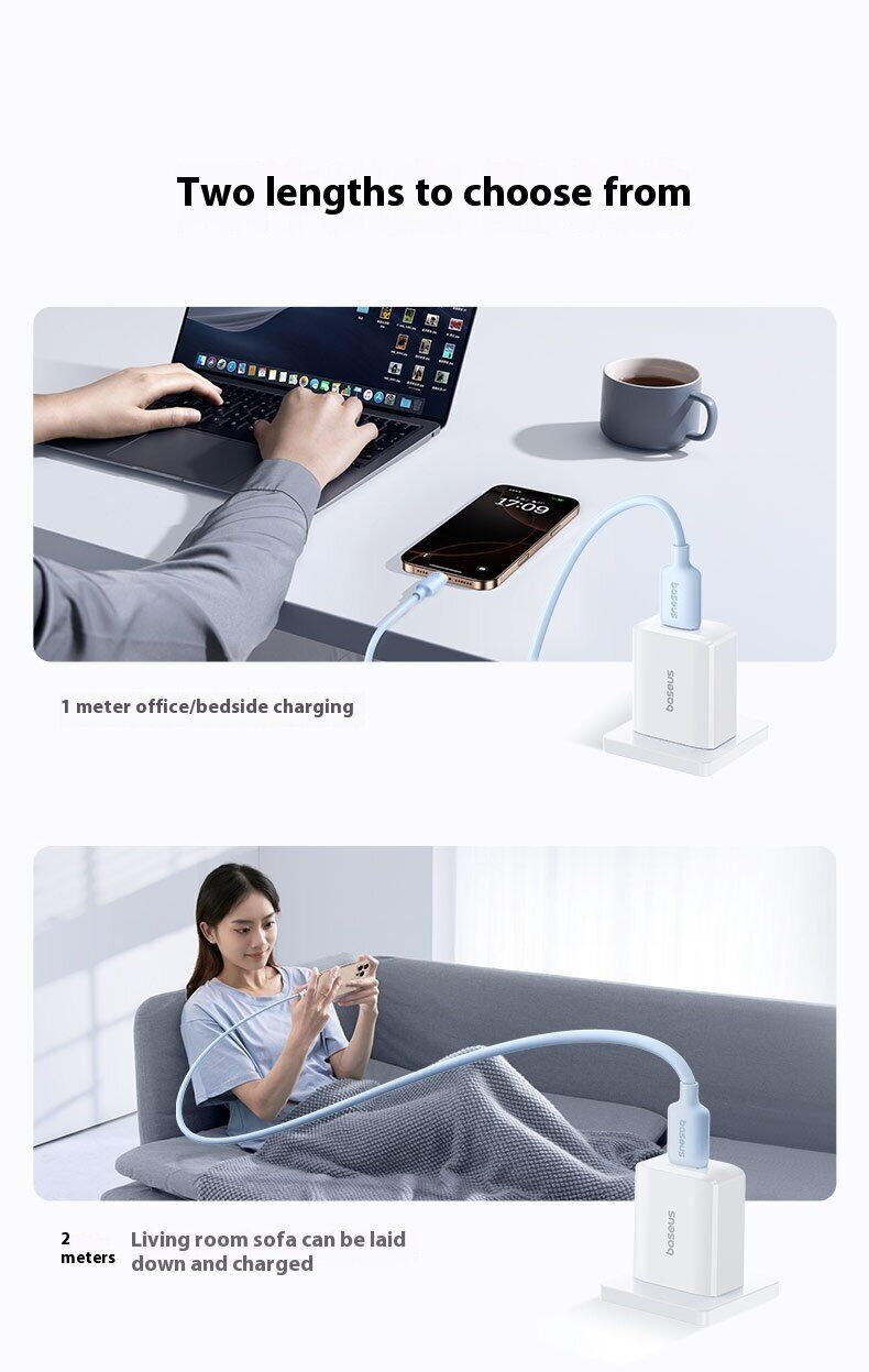 • Спінений силікон робить кабель м'яким, гнучким і приємним на дотик;