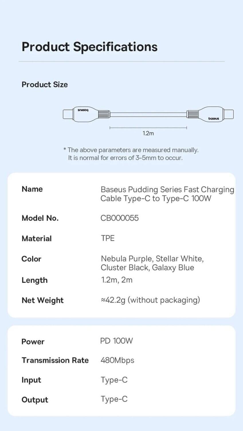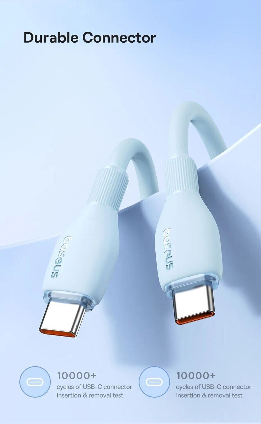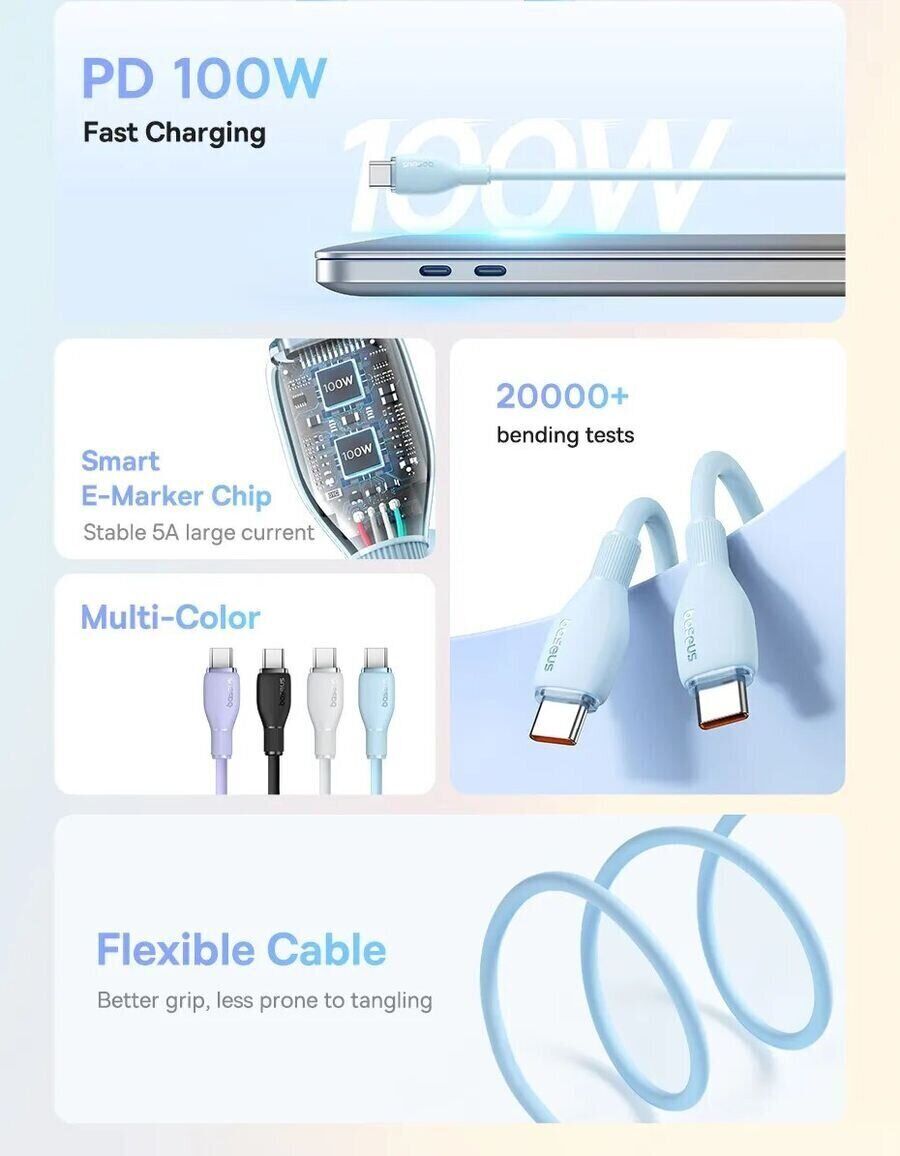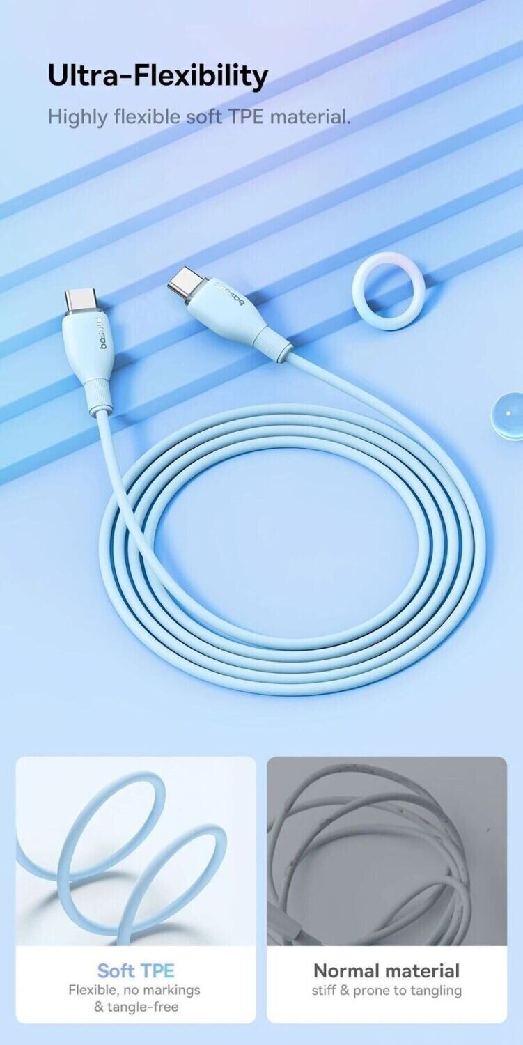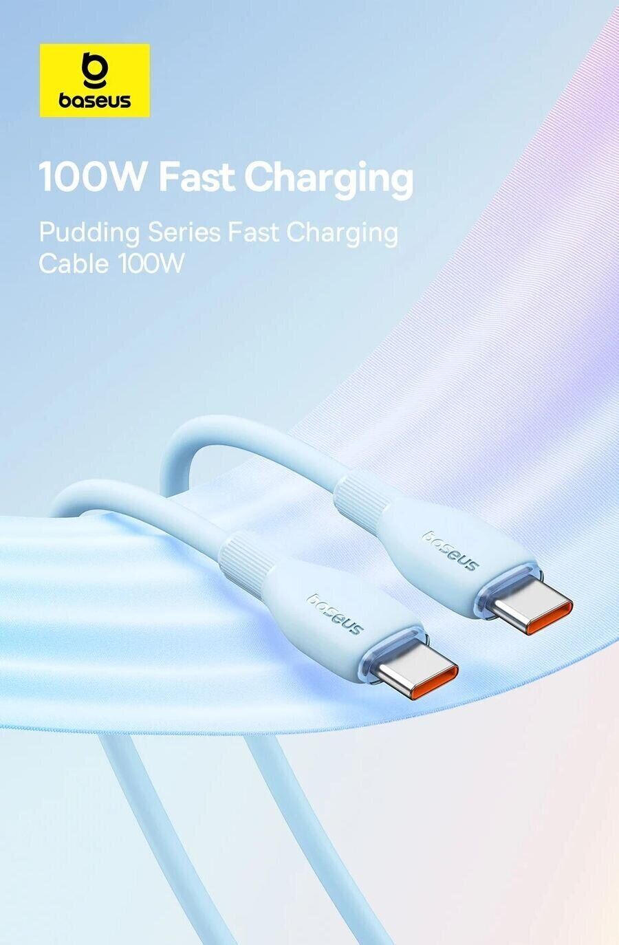 Особливості кабелю Baseus Pudding Series Type-C to Type-C (100W, 1.2m) P10355702111-00: