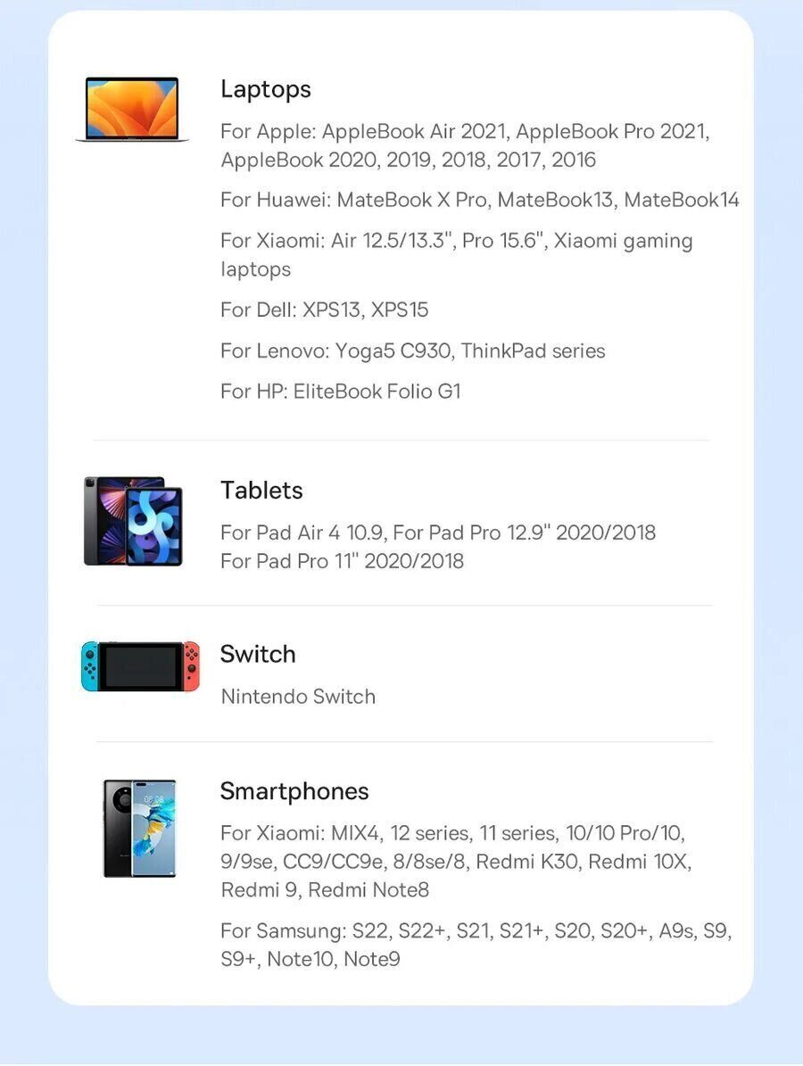 • Роз'єм Type-C сумісний із безліччю сучасних гаджетів;