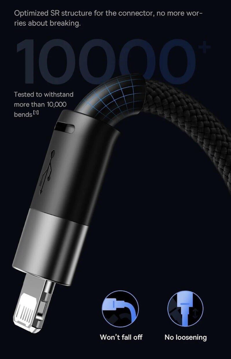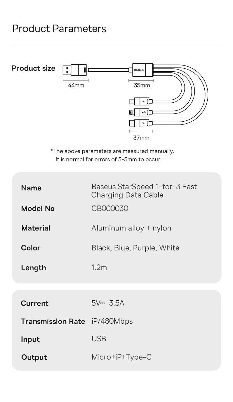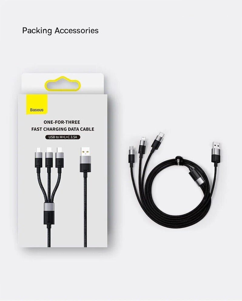 Особливості кабелю Baseus StarSpeed 3-in-1 USB to MicroUSB+Lightning+Type-C (3.5A, 1.2m) CAXS000002: