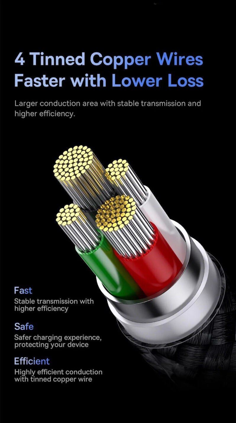 - Довжина 1,2 метра забезпечує зручність використання, не обмежуючи рухи, чи то вдома, чи то в офісі, чи то в автомобілі;