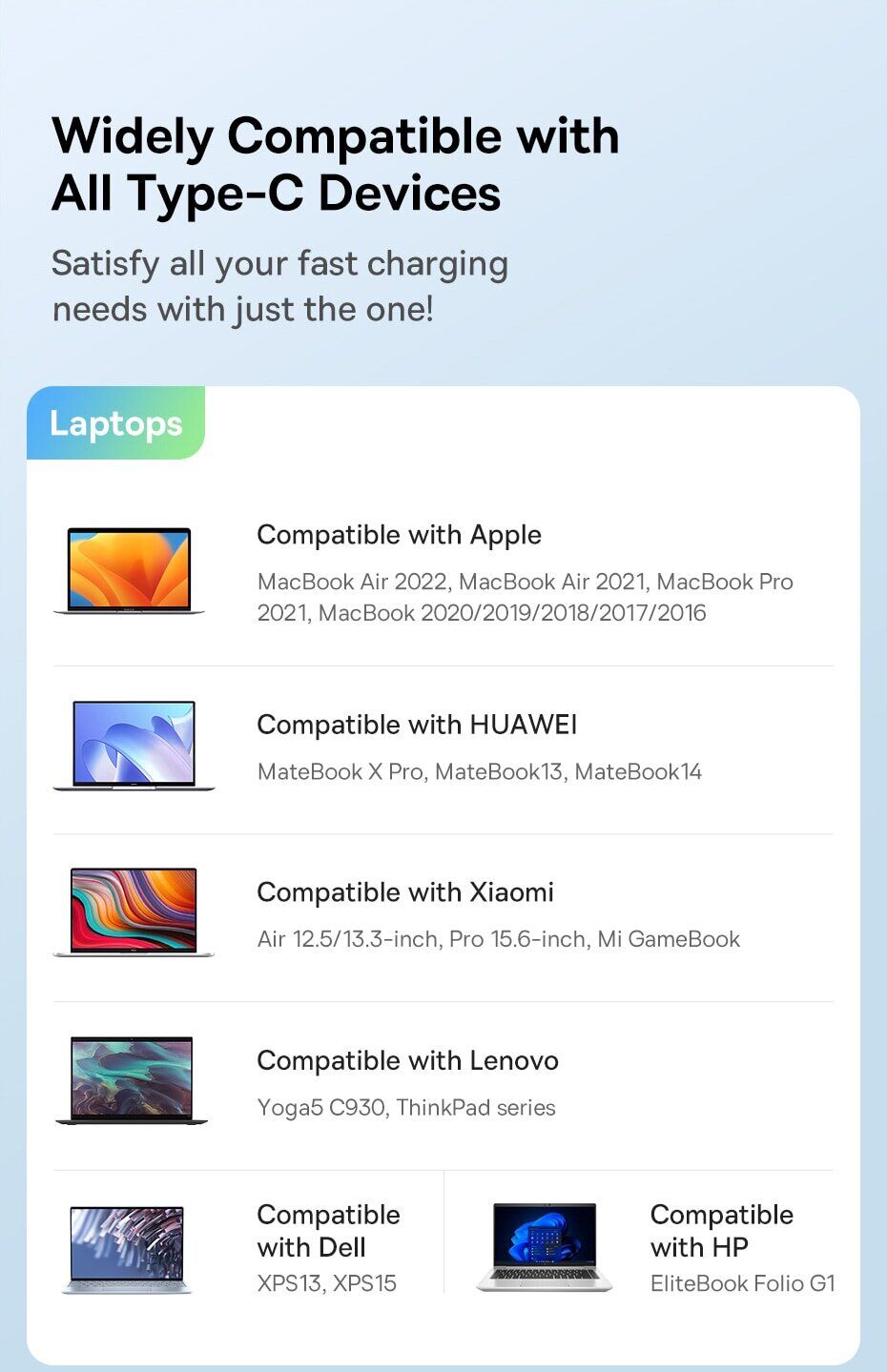 • Забезпечує вражаючу швидкість заряджання для потужних пристроїв, включаючи ноутбуки та ігрові станції;