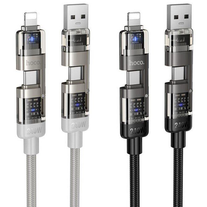 Особливості кабелю Hoco U151 3 in 1 USB+Type-C to Type-C+Lightning 240W (1m):