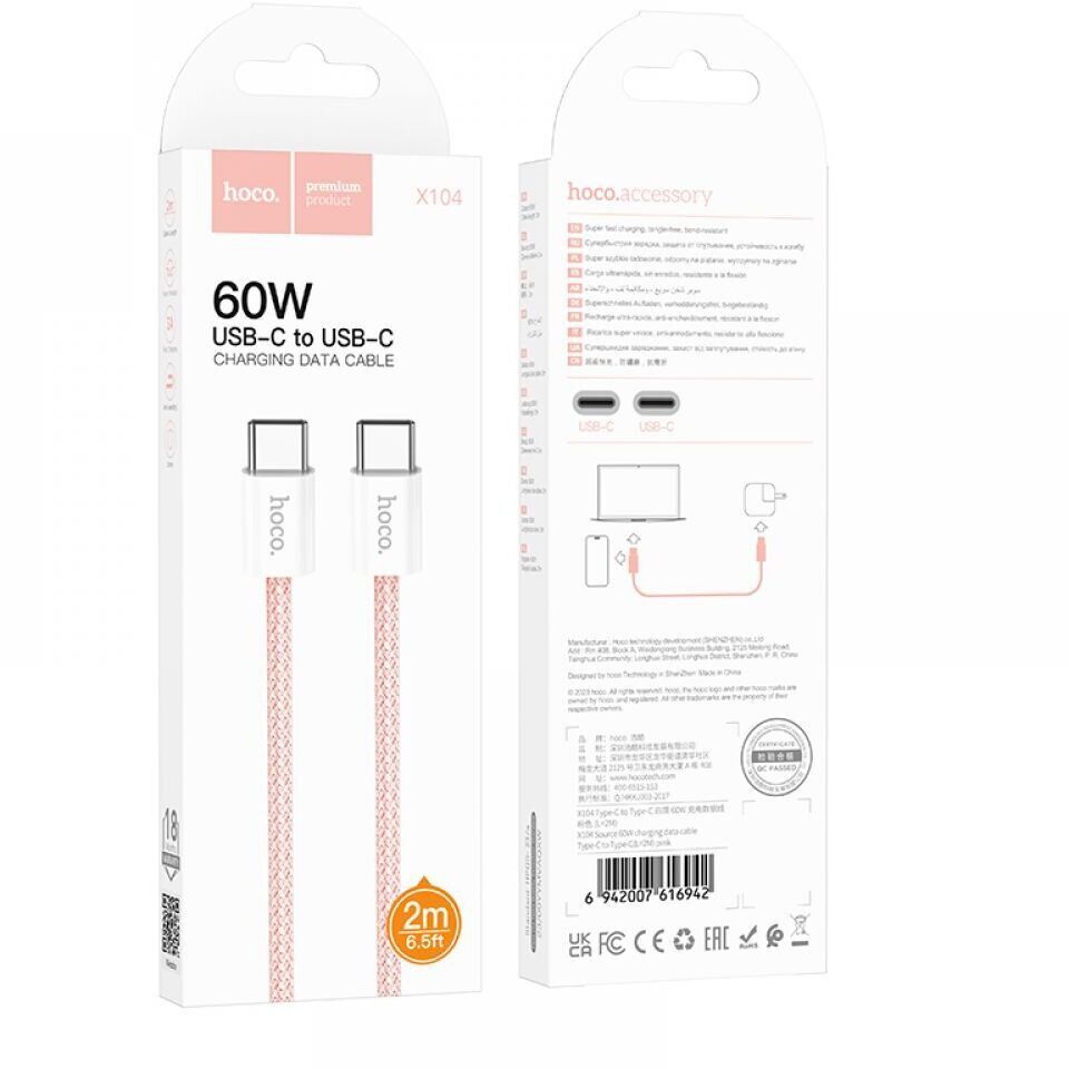 Кабель Hoco X104 Source 60W Type-C to Type-C (2m) - Pink