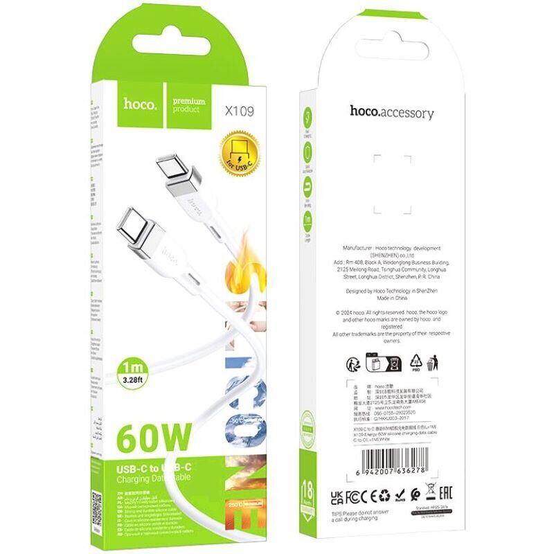 Кабель Hoco X109 Type-C to Type-C (60W, 3A, 1m) - White