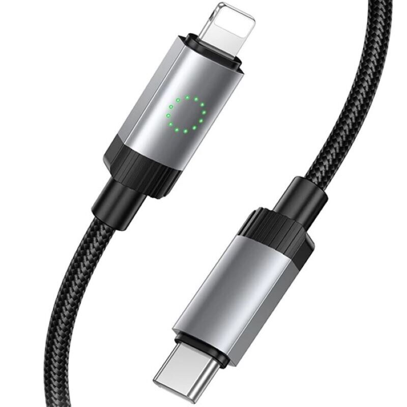 Кабель Hoco X117 Type-C to Lightning 27W (1m) - це сучасне рішення для швидкої та безпечної зарядки пристроїв Apple. Завдяки підтримці потужності до 27 Вт він забезпечує ефективну передачу енергії та даних, скорочуючи час зарядки до мінімуму. Довжина кабелю становить 1 метр — це оптимальний варіант для повсякденного використання як вдома, так і в офісі. Міцний матеріал обплетення робить аксесуар стійким до механічних пошкоджень, перегинів і зносу. Стильний зовнішній вигляд кабелю доповнюється LED-індикацією, яка сигналізує про процес зарядки, забезпечуючи додаткову зручність у використанні навіть у темний час доби.