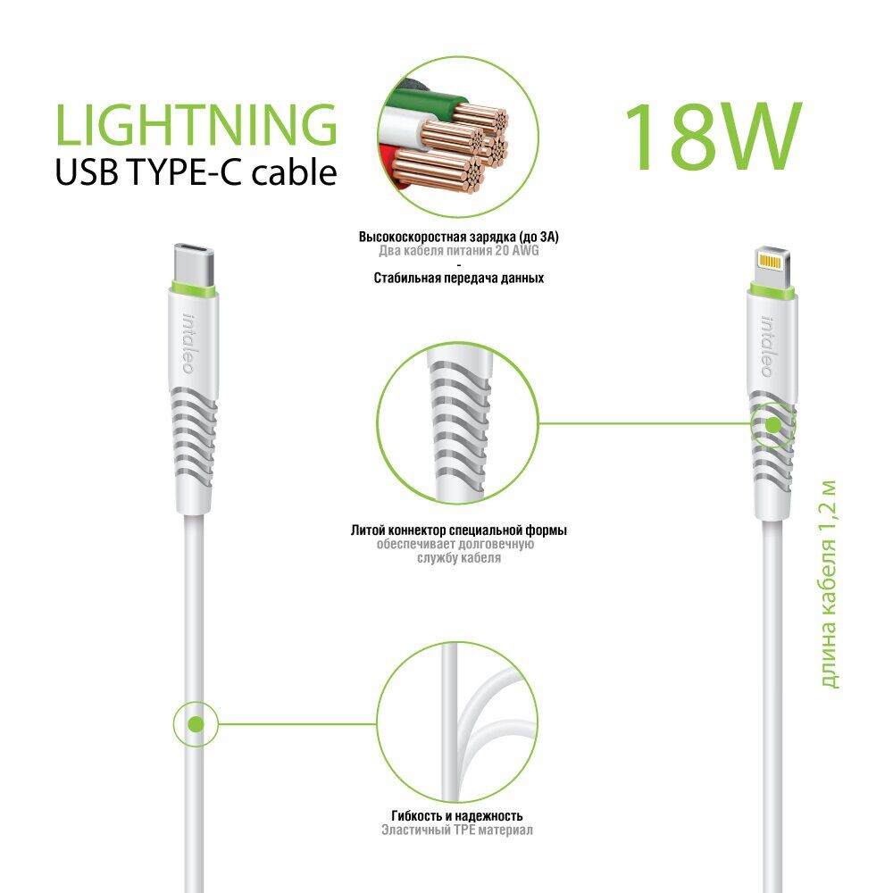 Кабель Intaleo CBFLEXTL1 Type-C to Lightning (18W, 1.2m) - Black