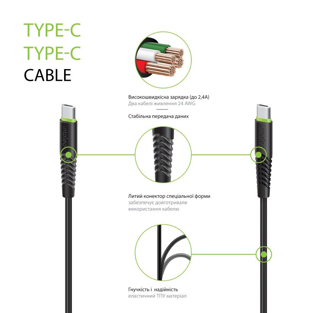 Особливості кабелю Intaleo CBFLEXTT0 Type-C to Type-C 60W (0.2m):