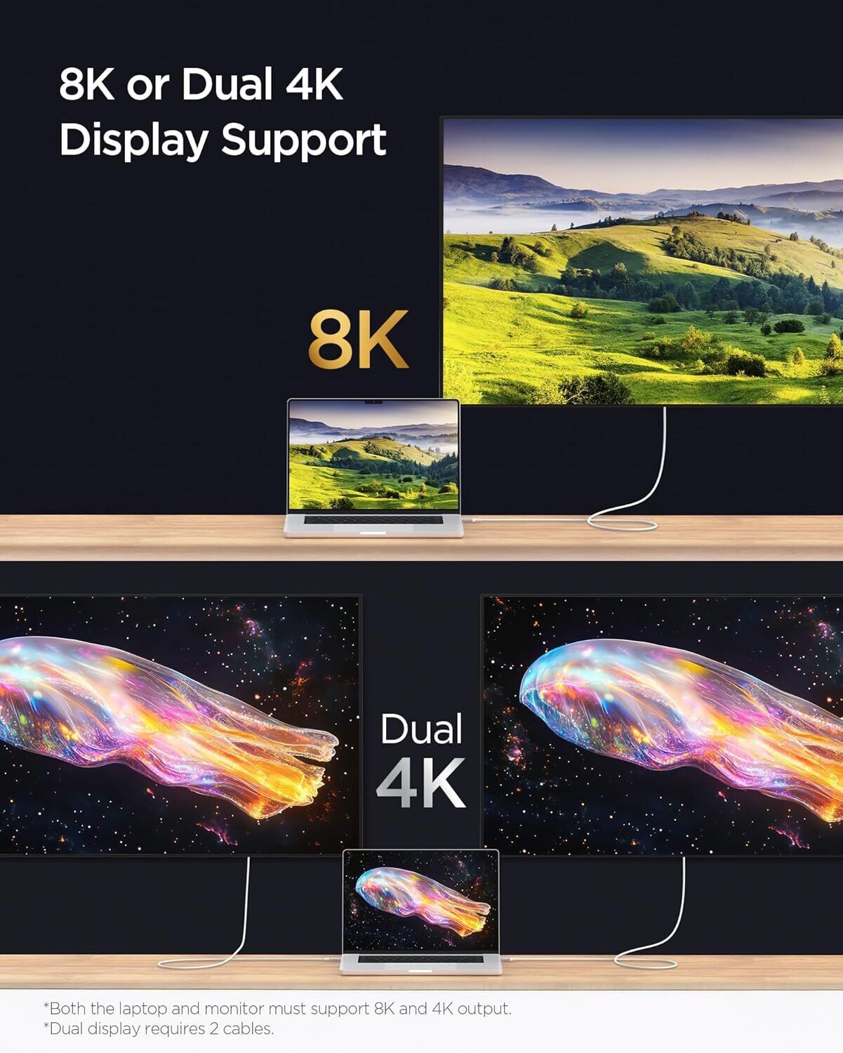 • Підтримка підключення дисплеїв і передача зображення до 8K одним кабелем;