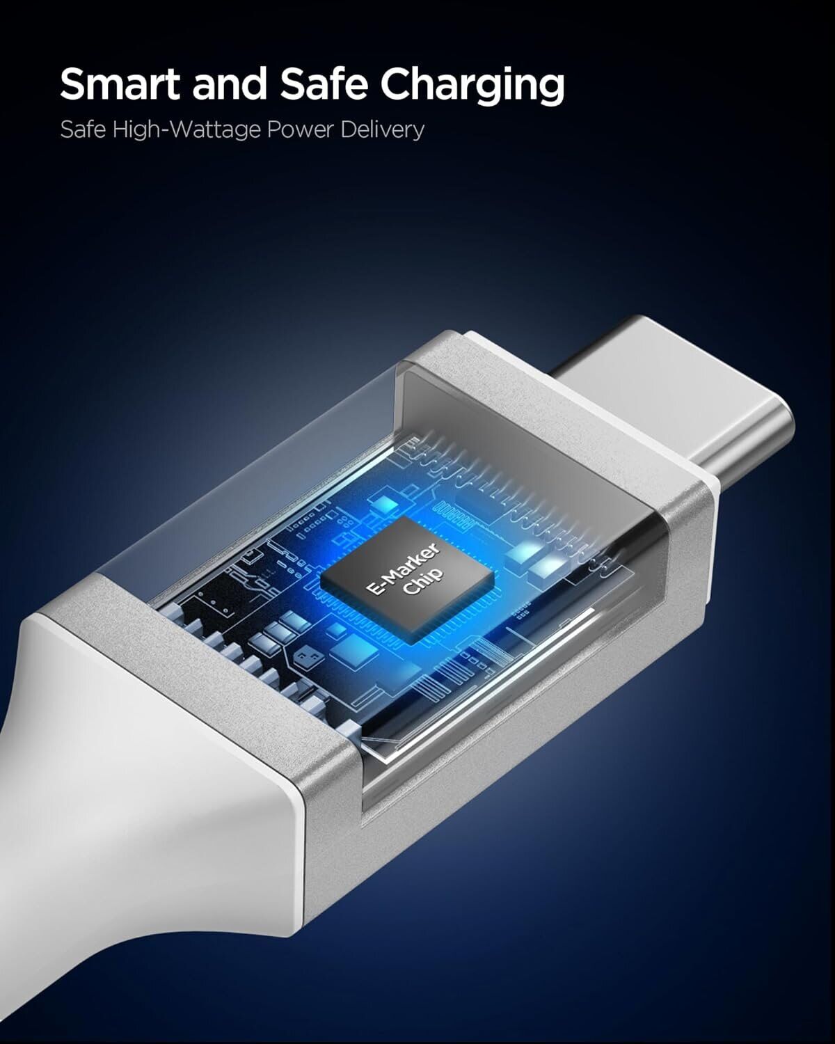 Кабель Spigen Essential Type-C to Type-C (240W, 1.2m) — високопродуктивний USB-C кабель для тих, кому важливо «одним проводом» закрити зарядку, швидку передачу даних і підключення до дисплеїв. Він підтримує потужність до 240 Вт, підлаштовуючи видачу енергії під потреби пристрою, а для сумісних смартфонів Samsung пропонує PPS 2.0, забезпечуючи режим Super Fast Charging. Кабель відповідає стандарту USB4 Gen 3 і розрахований на швидкість передачі даних до 40 Гбіт/с, що зручно для роботи з великими файлами, док-станціями і сучасними інтерфейсами. Додатково заявлена передача зображення аж до 8K — практично для підключення монітора без зайвих перехідників. За безпеку відповідає «розумний» чіп E-Marker, а Durabend-конструкція з багатошаровим посиленням підвищує стійкість до вигинів і щоденного зносу. Довжина 1,2 м — оптимальний баланс між компактністю і зручністю на робочому столі.