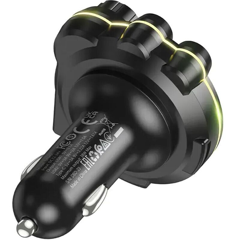 FM модулятор Hoco DFM01 20 Вт + QC3.0 (2 USB + Type-C) — це універсальний автомобільний пристрій, що дозволяє одночасно заряджати гаджети та передавати музику на аудіосистему автомобіля без дротів. Модель підтримує підключення через Bluetooth 5.0, забезпечуючи стабільну передачу сигналу зі смартфона на FM-частоту автомобільної магнітоли. Також передбачено відтворення музики з USB-накопичувачів і MicroSD-карт, що робить пристрій зручним для різних сценаріїв використання. Модулятор оснащений трьома портами — двома USB і одним Type-C, що підтримують сучасні протоколи швидкої зарядки, включаючи QC, PD, FCP і AFC, із загальною потужністю до 38 Вт. Компактний корпус і невелика вага роблять аксесуар зручним для щоденного використання в автомобілі, а широкий діапазон вхідної напруги дозволяє використовувати його в легкових і вантажних транспортних засобах.