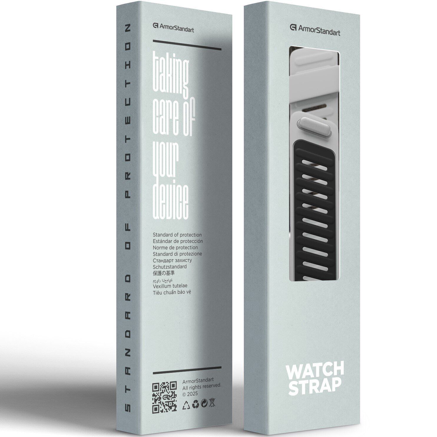 Ремінець ArmorStandart Silicone Tech для WHOOP MG / 5.0 — це практичне рішення для активного використання фітнес-трекера, що забезпечує надійну фіксацію та комфорт протягом усього дня. Основа виконана з щільного силікону з однорідною структурою, який поєднує еластичність і стійкість до деформації, завдяки чому ремінець м'яко адаптується до зап'ястя, не розтягується і зберігає форму навіть при тривалому носінні. Матеріал не вбирає вологу, стійкий до поту та легко очищується, що робить його особливо зручним для тренувань, бігу та повсякденної активності. Продумана геометрія забезпечує точну посадку модуля Whoop 5.0 / MG без люфтів, підтримуючи стабільний контакт сенсорів зі шкірою для коректного вимірювання показників. Ремінець залишається комфортним навіть при інтенсивних навантаженнях і тривалому використанні, не викликаючи дискомфорту.