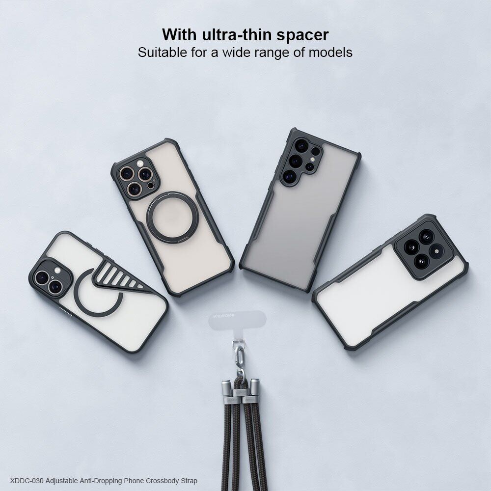 Ремінець для смартфона XUNDD XDDC-030 Crossbody Strap створений для зручного використання пристрою в повсякденних ситуаціях, дозволяючи тримати телефон під рукою без необхідності постійно носити його в руках або в кишені. Конструкція ремінця передбачає регулювання довжини до 150 см, що дозволяє налаштувати посадку під різні сценарії носіння – через плече, на шиї або у вигляді кросбоді. Основа виконана з високоякісного нейлону, який приємний на дотик і відрізняється стійкістю до зносу. Міцна плетена структура допомагає знизити ризик випадкового падіння пристрою, зберігаючи комфорт під час використання. У комплект входить тонка універсальна підкладка-вставка, яка розміщується між смартфоном і чохлом і створює кріпильну точку для ремінця, що робить його сумісним з широким переліком моделей без необхідності додаткових аксесуарів. Надійна фіксація ремінця досягається за рахунок металевого кліпа з цинкового сплаву, який утримує з'єднання в стійкому положенні та запобігає його самовільному від'єднанню під час використання.