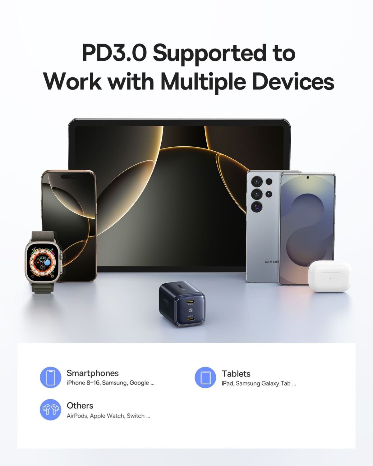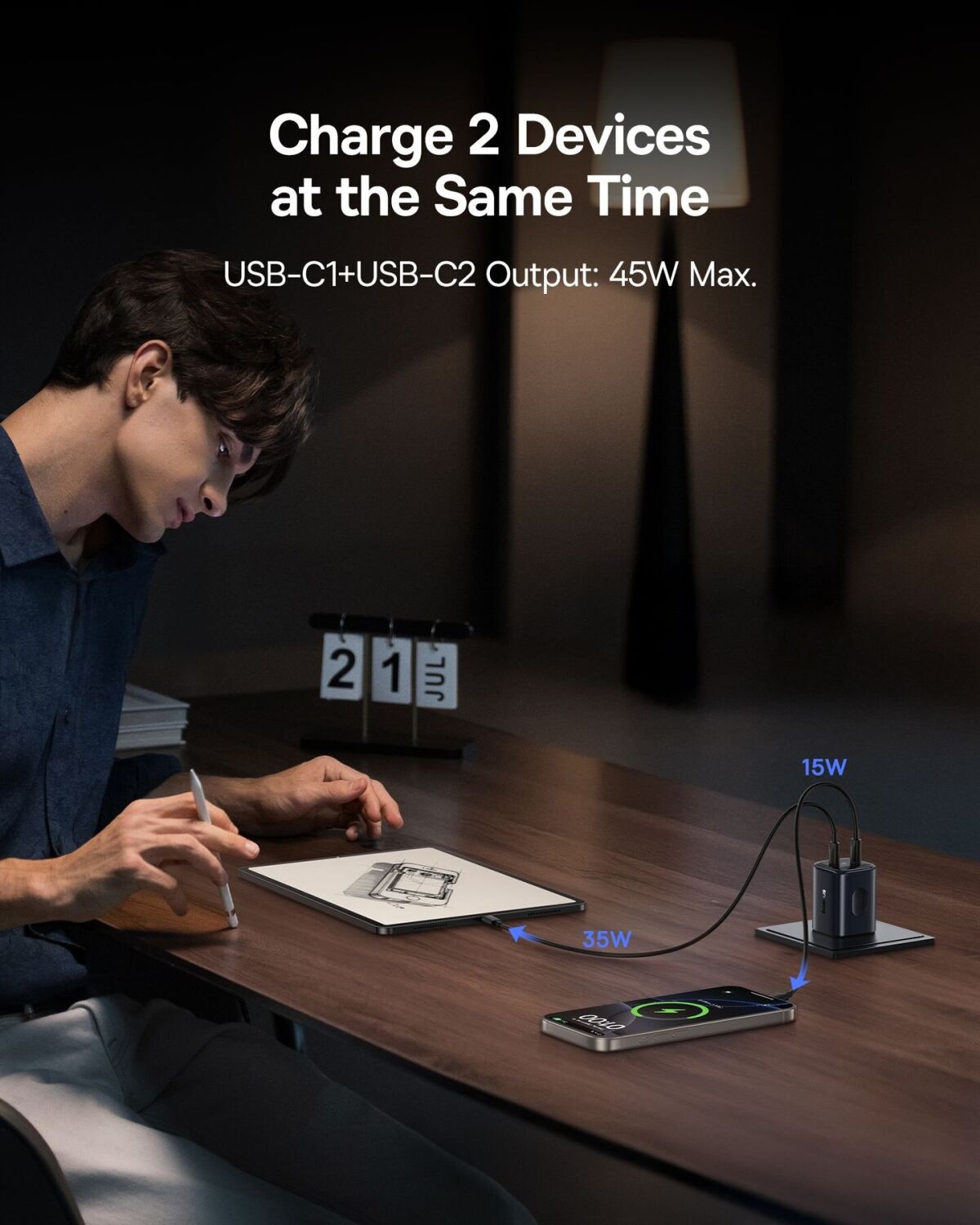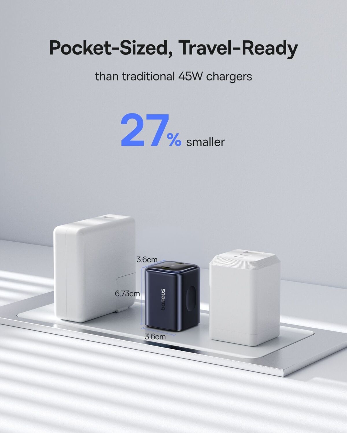 • Потужність до 45 Вт з підтримкою швидкої зарядки PD і PPS;