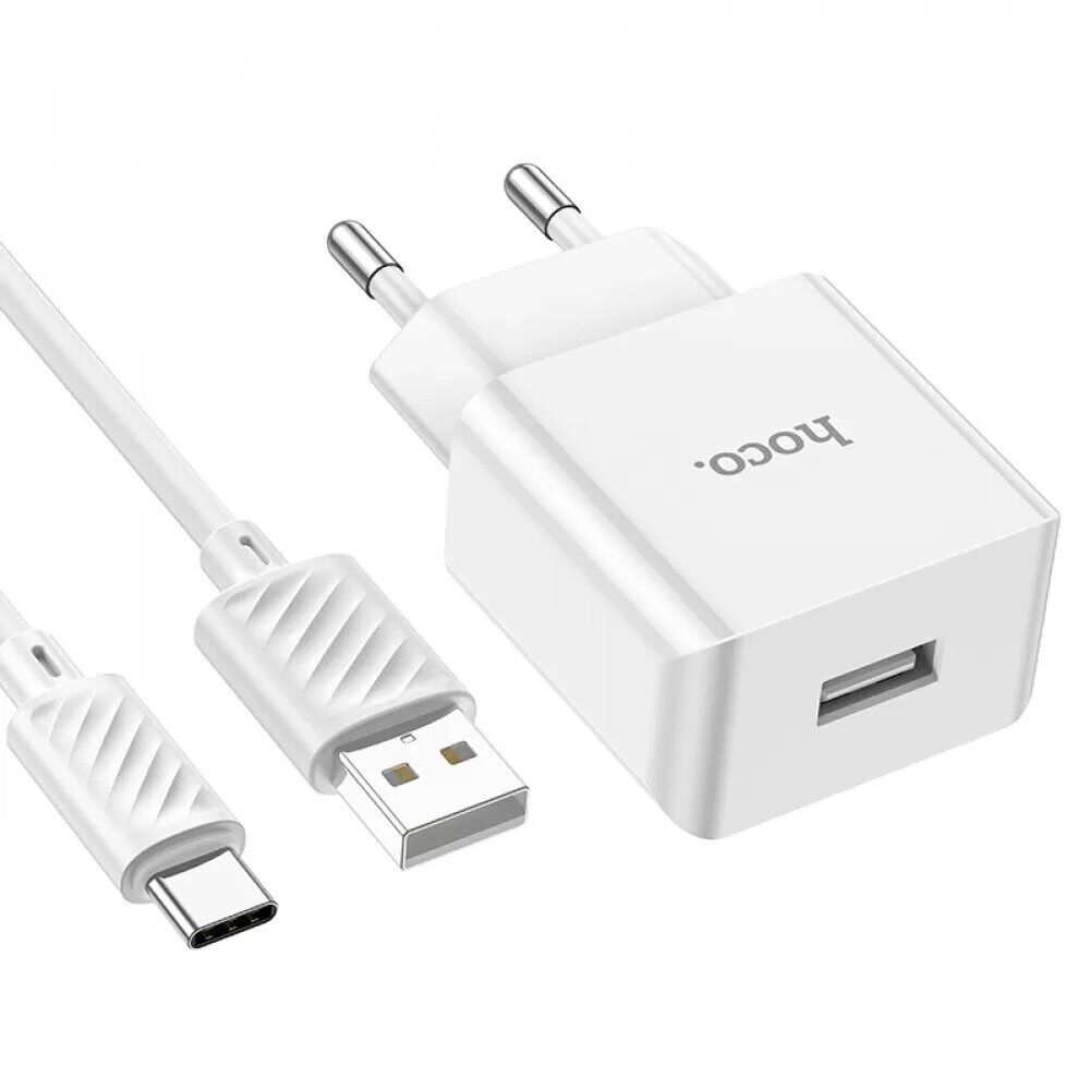 Мережевий зарядний пристрій Hoco C106A 10.5W + кабель USB to Type-C - White