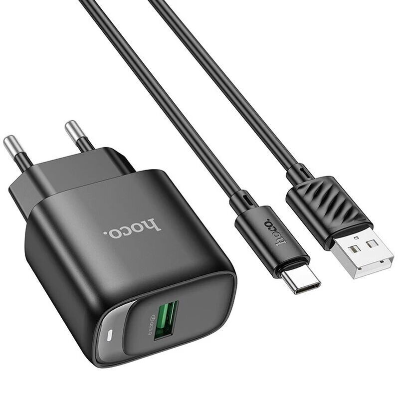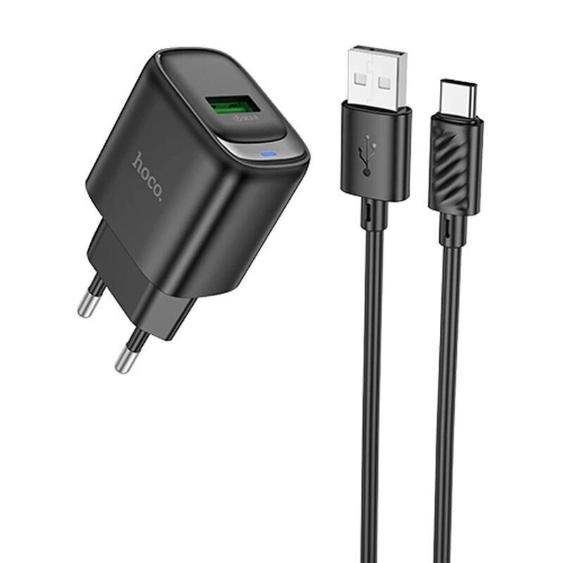 Мережевий зарядний пристрій Hoco C140A Smart QC3.0 (18W, 3A) + кабель USB to Type-C - Black