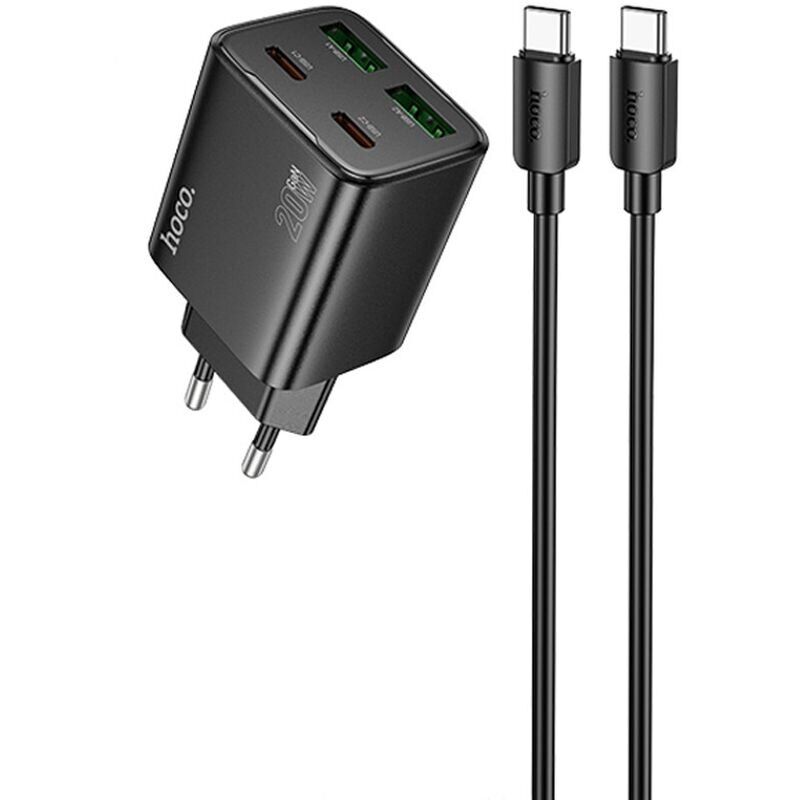Мережевий зарядний пристрій Hoco N55 20W 2C+2U + кабель Type-C to Type-C - Black