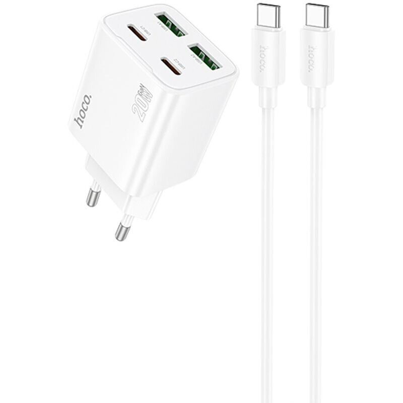 Мережевий зарядний пристрій Hoco N55 20W 2C+2U + кабель Type-C to Type-C - White