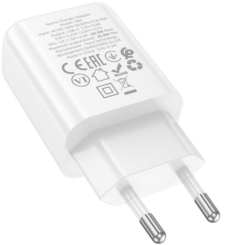 Мережевий зарядний пристрій Hoco N60 PD20W (Type-C) - White (960198W). Фото 5 з 6Мережевий зарядний пристрій Hoco N60 PD20W (Type-C) - White (960198W). Фото 6 з 6