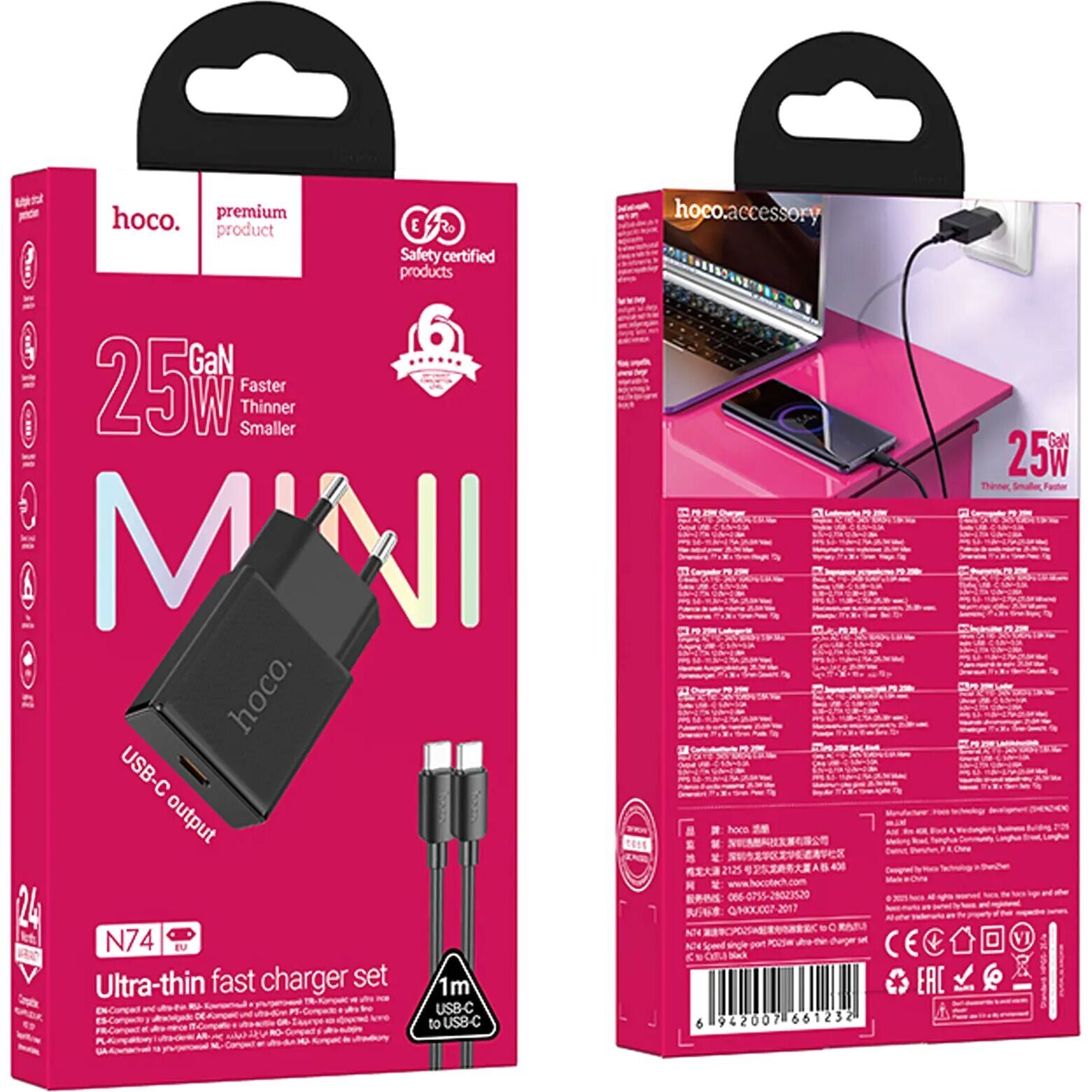 Мережевий зарядний пристрій Hoco N74 PD25W + кабель Type-C to Type-C - Black