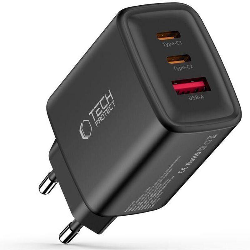 Мережевий зарядний пристрій Tech-Protect Network Charger GaN 65W (2Type-C + USB) - Black
