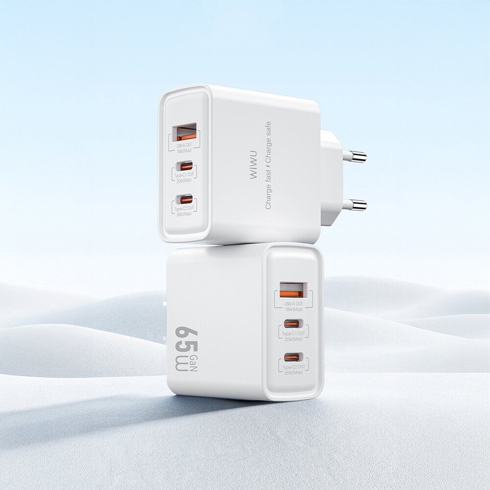 Мережевий зарядний пристрій WIWU Wi-G005 Gan 65W (1U+2C) - White