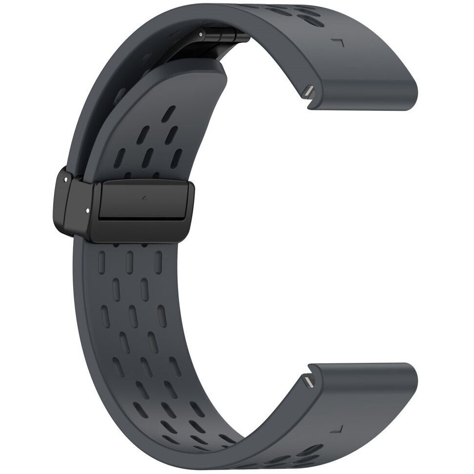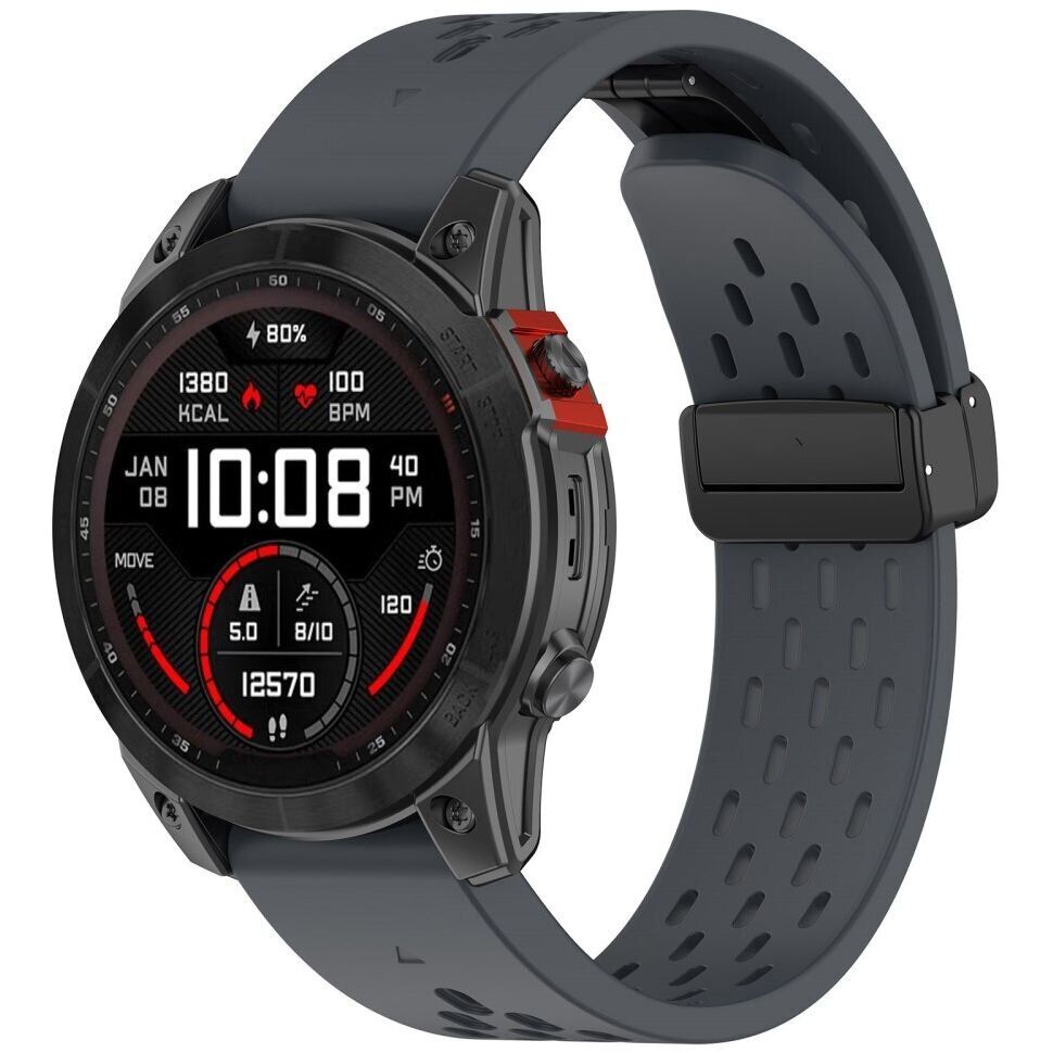 Ремінець Deexe Astra Strap для годинника Garmin з кріпленням QuickFit 22mm виготовлений з преміального силікону з унікальною структурою безлічі отворів, завдяки чому він забезпечує відмінну вентиляцію та комфорт у будь-якій ситуації. Ніжний до шкіри матеріал унеможливлює подразнення та алергії, роблячи його ідеальним для щоденного використання. Стильна магнітна застібка забезпечує легкість в одяганні та зніманні годинника, а також надійно фіксує їх на зап'ясті. Ремінець Deexe Astra Strap є відмінною заміною вашому зношеному або зламаному аксесуару, додаючи елегантності та функціональності вашому годиннику Garmin.