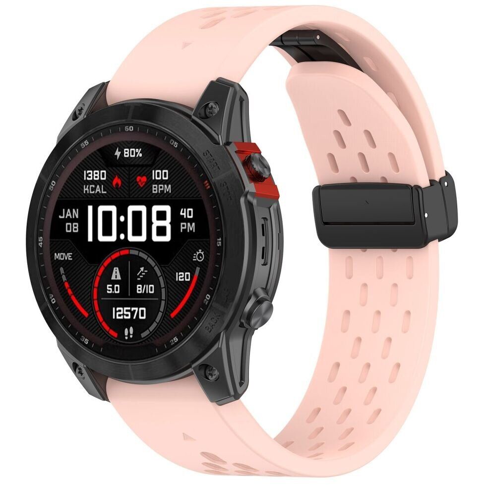 Ремінець Deexe Astra Strap для годинника Garmin з кріпленням QuickFit 22mm виготовлений з преміального силікону з унікальною структурою безлічі отворів, завдяки чому він забезпечує відмінну вентиляцію та комфорт у будь-якій ситуації. Ніжний до шкіри матеріал унеможливлює подразнення та алергії, роблячи його ідеальним для щоденного використання. Стильна магнітна застібка забезпечує легкість в одяганні та зніманні годинника, а також надійно фіксує їх на зап'ясті. Ремінець Deexe Astra Strap є відмінною заміною вашому зношеному або зламаному аксесуару, додаючи елегантності та функціональності вашому годиннику Garmin.