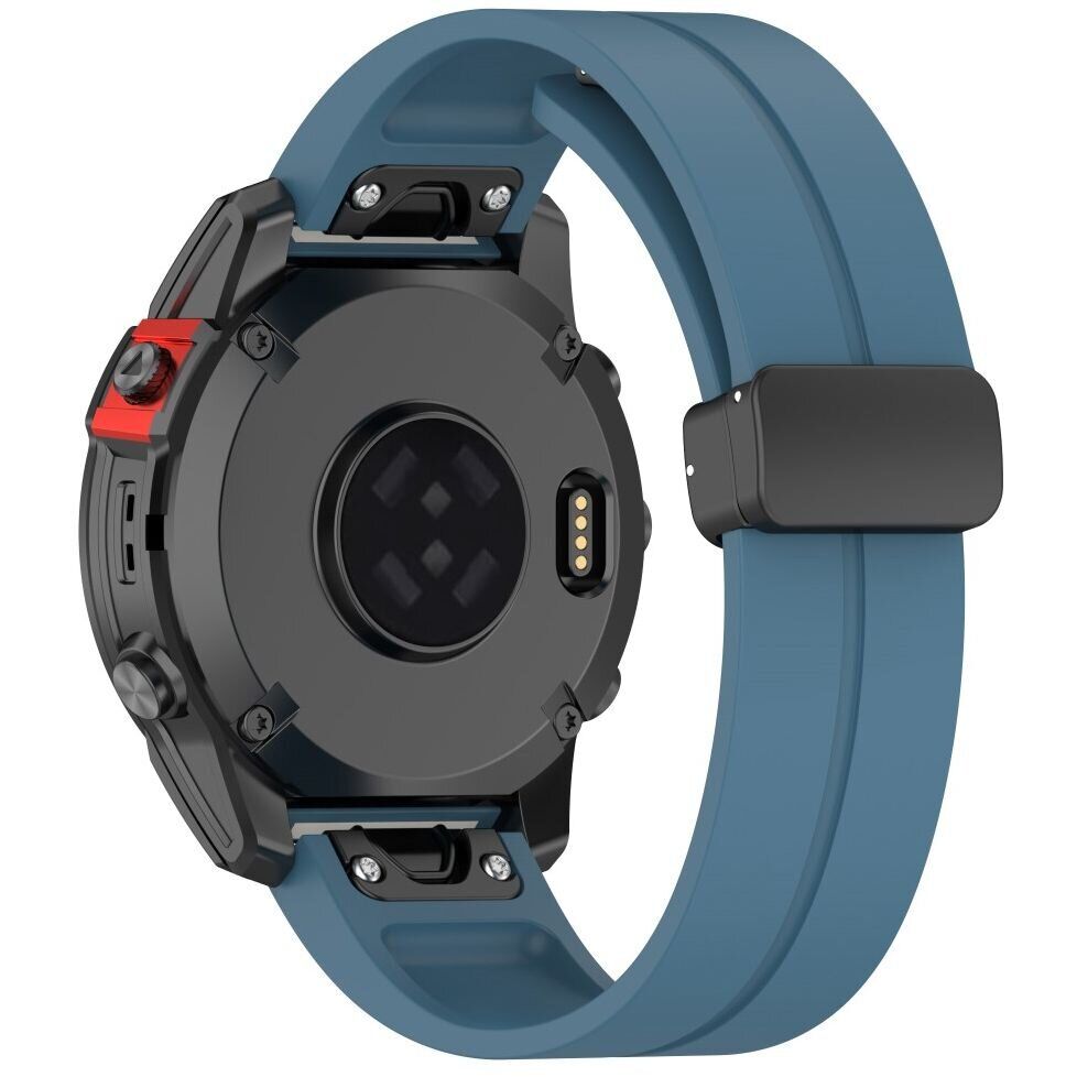 Ремінець Deexe Color Soft Line для годинника Garmin з кріпленням QuickFit 22mm виготовлений з м'якого силікону, який забезпечує комфортне носіння. Його застібка з магнітною фіксацією забезпечує легкість надягання та зняття браслета, а також високу надійність кріплення. Ремінець легко та просто замінити. На його кінцях вмонтовані спеціальні клямки, які міцно фіксуються на годиннику і не дозволяють зісковзувати кріпленню. До всього іншого в комплекті йде два допоміжні інструменти.