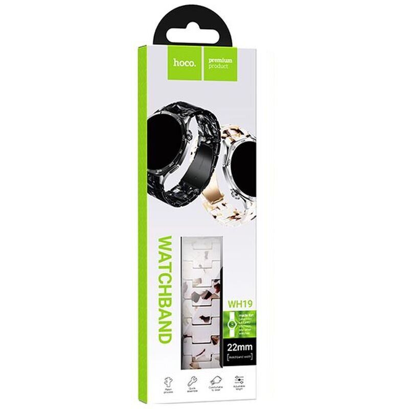 Ремінець Hoco WH19 для годинників із шириною кріплення 22мм — це практичний аксесуар для щоденного носіння, який поєднує надійну фіксацію, комфорт на зап'ясті та виразний зовнішній вигляд. Ремінець виготовлений з міцного пластику і оснащений застібкою з нержавіючої сталі, завдяки чому він добре підходить для активного використання і зберігає акуратний вигляд при регулярному носінні. Ремінець підходить для годинників Samsung, Huawei, Xiaomi, Vivo, OPPO, моделей HOCO серії Y, класичних годинників та інших пристроїв з плоским інтерфейсом кріплення 22 мм.