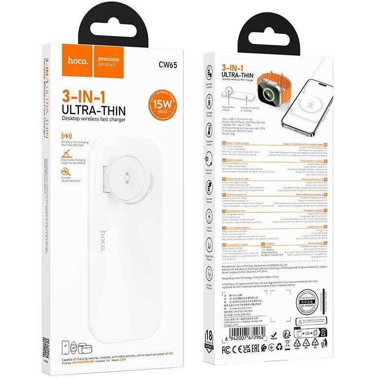 Бездротовий зарядний пристрій Hoco CW65 3 in 1 (15W) - White (958305W). Фото 6 з 7Бездротовий зарядний пристрій Hoco CW65 3 in 1 (15W) - White (958305W). Фото 7 з 7