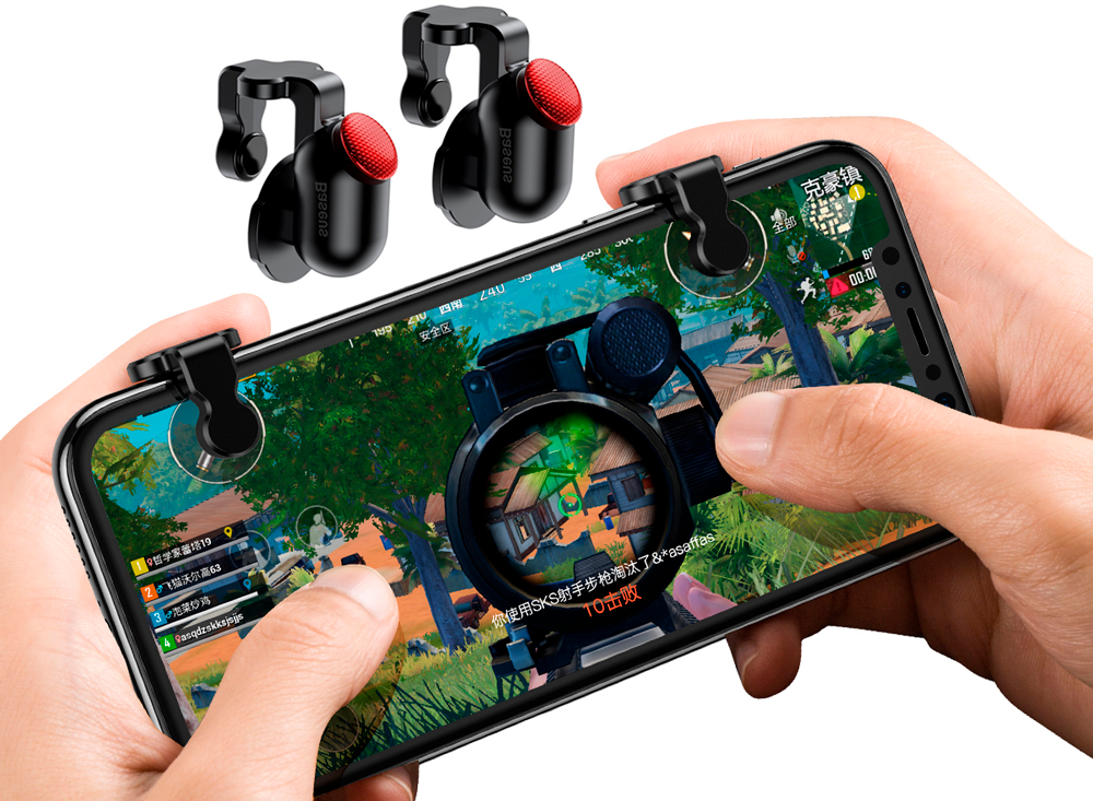 Контроллер Baseus Red Dot Mobile Game — это два джойстика с триггерами в виде красных кнопок с текстурированной поверхностью, за счет чего они легко находятся на ощупь, и не скользят под пальцами. Приспособление предназначено для того, чтобы пользователь мог задействовать в игре не только большие пальцы обеих рук, но и указательные. Baseus Red Dot Mobile Game предназначен для игры на смартфоне в альбомной ориентации. Крепится на торце смартфона и не загораживает игровую карту.