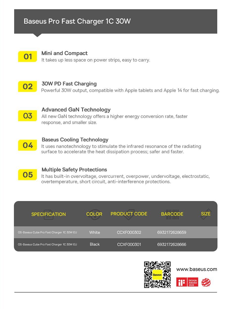 Особенности сетевого зарядного устройства Baseus Cube Pro 30W (Type-C):