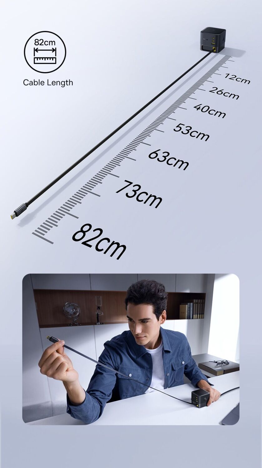 • Выдвижной кабель Type-C длиной 0,8 м избавляет от лишних проводов и делает использование более удобным на рабочем столе;