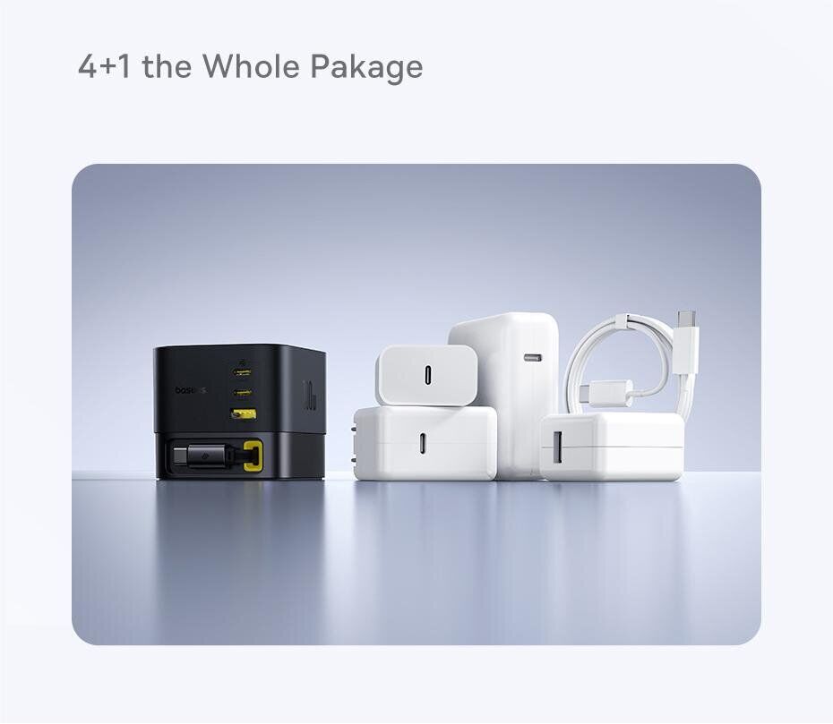 Особенности сетевого зарядного устройства Baseus Super GaN Desktop 100W (2Type-C+USB) + кабель Type-C (P10164001123-00):