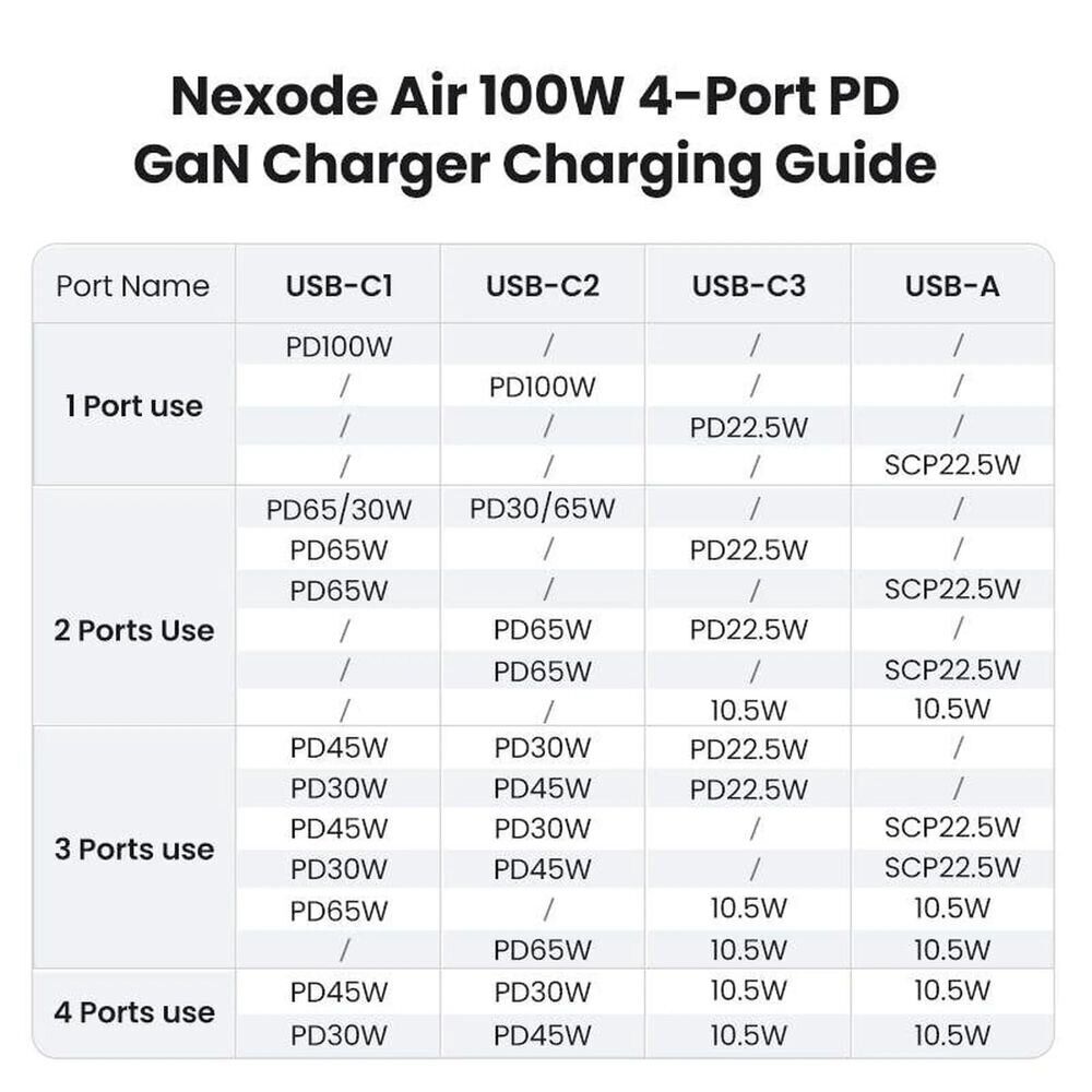 - Одновременная зарядка до четырех устройств с умным распределением мощности;